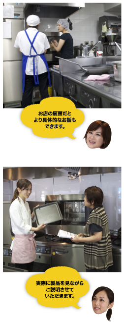 高野 もちろんです。導入直後にご希望があればお店に伺いますし、近くへ行ったときは寄らせていただくこともあります。あとは使い方や調理モードのご相談にメール等でお答えしたり、新開発のメニューを見てほしいというお話をいただいたり。そんな中で、お客様から新しい使い方を教えていただくこともあり、私たちも勉強になっています。導入をご検討中で、キッチンスタジオに来ることができないお客様の場合はお伺いしてご説明させていただいてます。こんな風に、導入前も後も、お客様とお付き合いできるのは大変ありがたいことだと思います。
